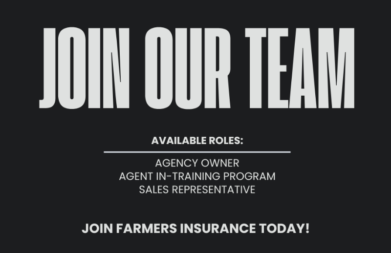 At Farmers Insurance, we don’t just offer coverage... we build careers. Whether you're just starting out or ready to grow your own agency, we provide the training, support, and resources to help you succeed. Be your own boss, make a difference in your community, and unlock your potential with a brand people trust.